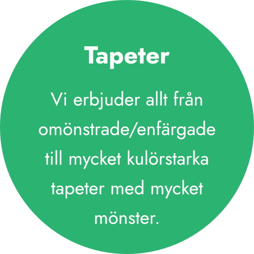 Vi har ett stort utbud av tapeter och easy up tapeter i vår tapetbutik. Vi kan erbjuda allt från omönstrade/enfärgade till mycket kulörstarka tapeter med mycket mönster. Kom in till vår tapethandel och se vad vi har att erbjuda till just dig och få råd för hur du ska tapetsera.